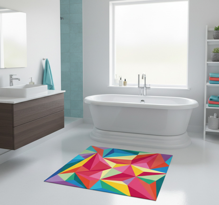 The Bathroom vinyl rug with multicolor geometric design bathroom vinyl rug is the ultimate choice for anyone looking to elevate their interior decor. Its striking design will captivate your guests and transform your bathroom into a stylish retreat. The vibrant colors and unique patterns can complement various styles, making it an excellent addition to any home. Experience the joy of a beautifully decorated bathroom without the hassle!