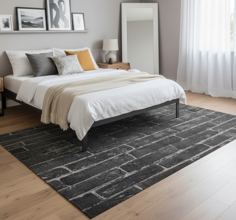 Elevate your interior design with the Bedroom vinyl rug grey stone brick wall design bedroom vinyl rug, which effortlessly complements various styles. Its sophisticated look adds a touch of elegance while providing a warm and inviting atmosphere. This rug is perfect for creating a cozy reading nook or a serene sleeping area, making it a must-have for anyone looking to enhance their bedroom decor!