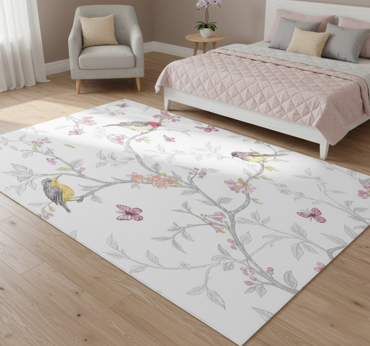 The Bedroom vinyl rug with birds on branches design bedroom vinyl rug is a delightful addition to any bedroom, inspiring warmth and harmony. Its enchanting design invites tranquility, making it an ideal choice for relaxation spaces. Imagine stepping onto a soft, inviting surface that not only enhances your decor but also provides a cozy atmosphere. This rug is perfect for expressing your personality while creating a serene environment!