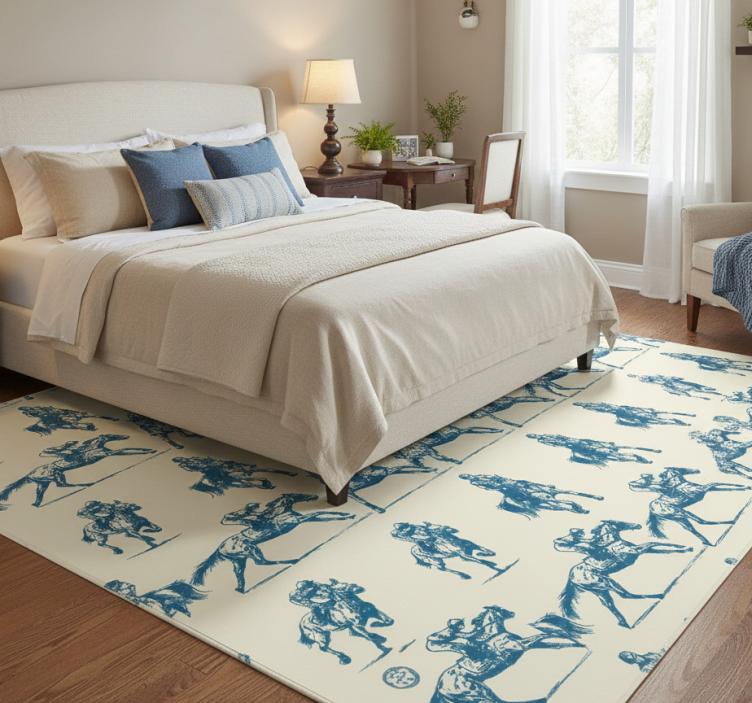 The Bedroom vinyl rug with blue and beige horse design bedroom vinyl rug is perfect for those looking to elevate their interior style. Its captivating design adds a unique flair, making it more than just a functional item; it’s a statement piece that inspires creativity and warmth in your bedroom. This rug creates a cozy ambiance, inviting you to unwind in a beautifully styled space!