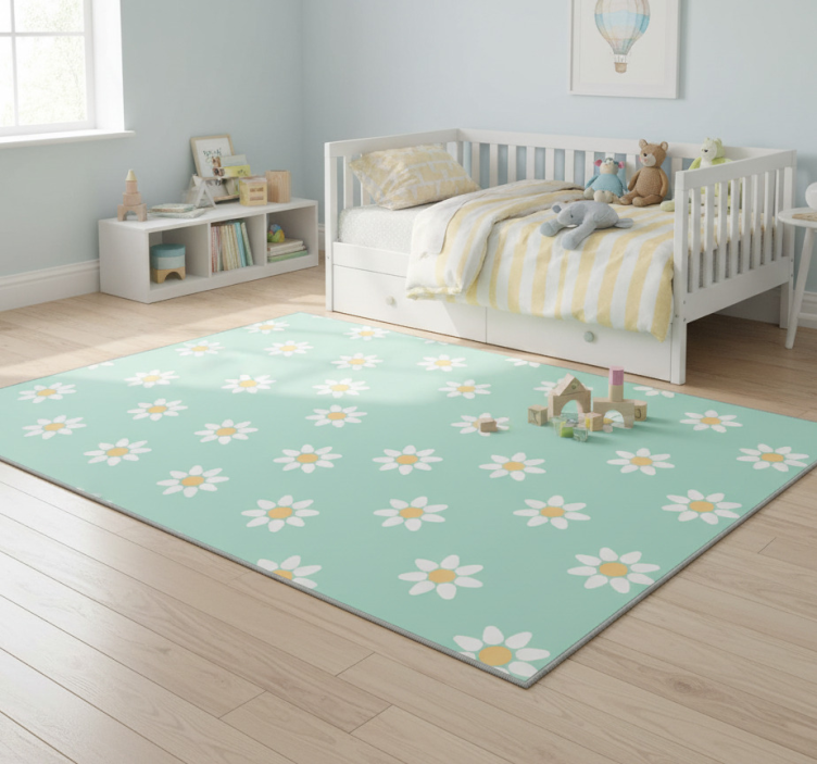 Bedroom vinyl rug with kids daisy design