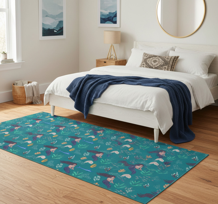 Bedroom vinyl rug with mermaids and swordfish