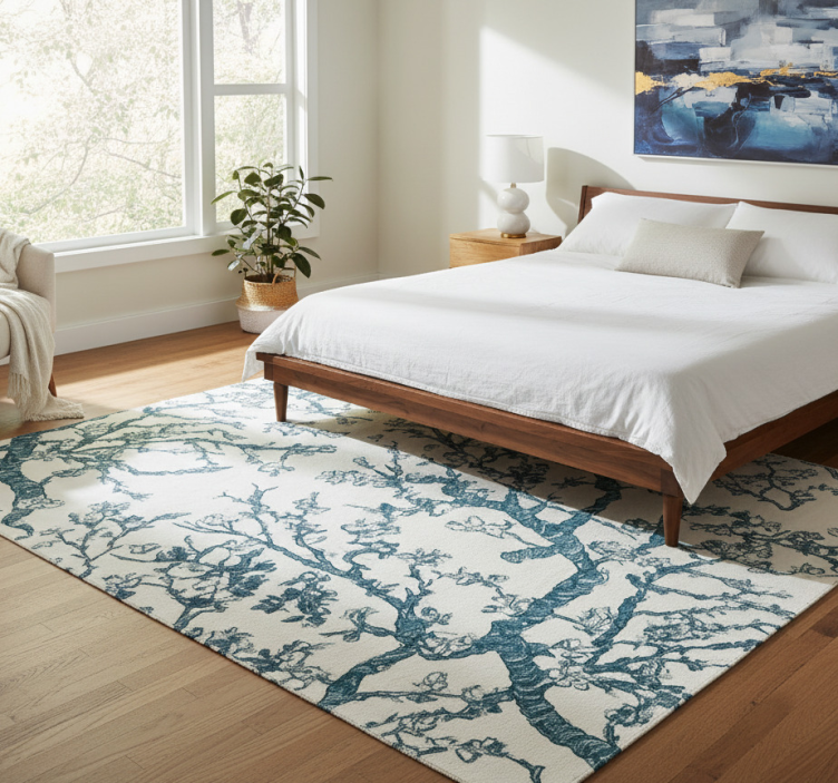 Dark blue tree design bedroom vinyl rug