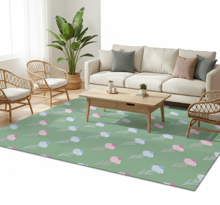 Floral vinyl rug chamomile daisy design