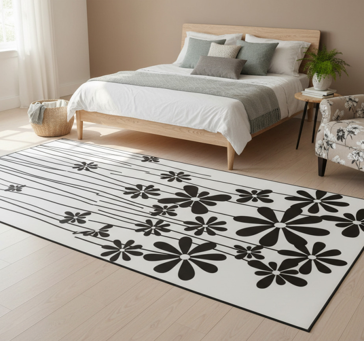 Floral vinyl rug with large black flowers