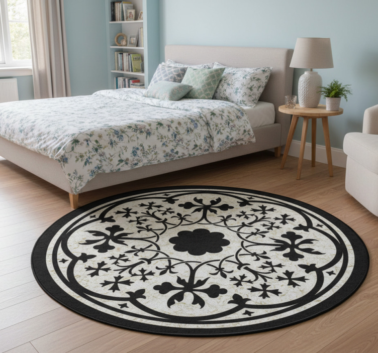Enhance your interior decor with the Floral vinyl rug gothic rosette design floral vinyl rug! This exquisite piece not only adds a touch of sophistication to your home but also serves as a stunning focal point that draws attention. The unique combination of floral and gothic elements creates a warm and inviting atmosphere, making it perfect for living rooms, dining areas, or even bedrooms. Let your creativity flow and make your space truly yours!