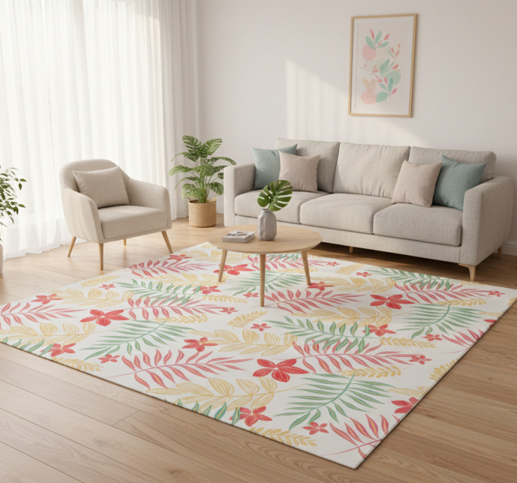 The Floral vinyl rug with neon leaves design is an ideal choice for anyone looking to elevate their home decor. Its unique design brings a cheerful vibe to your space, perfect for brightening up a dull room or adding intrigue to a stylish setting. Imagine stepping onto a beautiful floral rug that invigorates your mood and inspires creativity!
