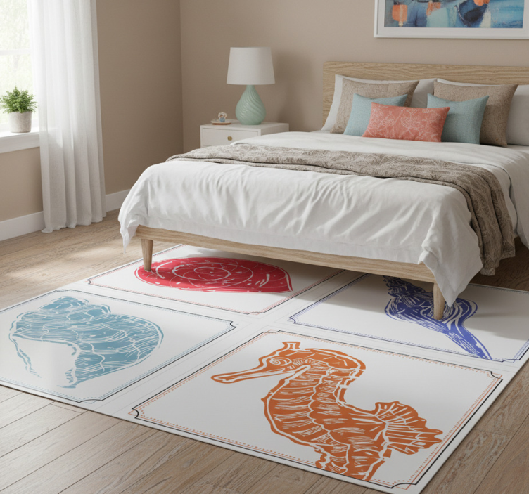 Floral vinyl rug with ocean-inspired designs