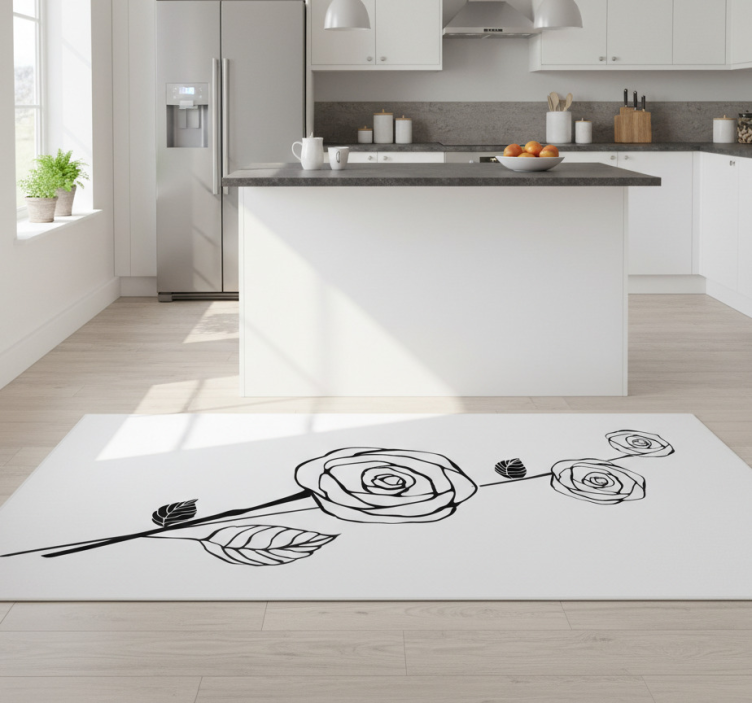 Discover the magic of the Black and white roses kitchen vinyl rug that effortlessly enhances your home decor. This kitchen vinyl rug is perfect for those who seek an elegant yet practical solution for their kitchen. Its striking design and durable material make it an ideal choice for anyone looking to elevate their interior while providing comfort and style!