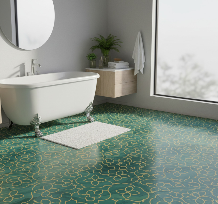 Maintaining the Turquoise bathroom vinyl rug is a breeze! Simply wipe it down with a damp cloth or mop to keep it looking fresh and vibrant. Regular cleaning will ensure it remains a stunning focal point in your bathroom.
