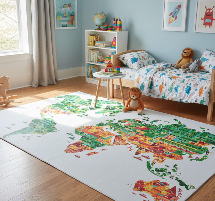 The World map vinyl rug geometric world map decor is not just a rug; it's a statement piece that elevates your interior design. Imagine stepping onto a stunning depiction of the world that sparks conversation and curiosity! This world map vinyl rug enhances any room, celebrating global culture while providing a chic and stylish atmosphere. Its versatility allows it to fit seamlessly into living rooms, bedrooms, or play areas, captivating everyone who sees it.
