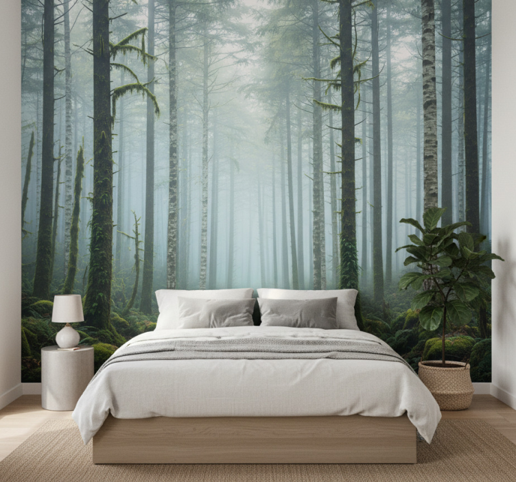 The Forest wall mural atmospheric mist design forest wall mural is perfect for transforming any room into a peaceful retreat. Imagine waking up to the gentle embrace of lush greenery and soft mist, inspiring creativity and relaxation. This mural serves as a stunning focal point, inviting warmth and a sense of calmness into your space. Whether in a living room, bedroom, or office, it revitalizes the atmosphere, making it a must-have for anyone seeking a touch of nature in their home!