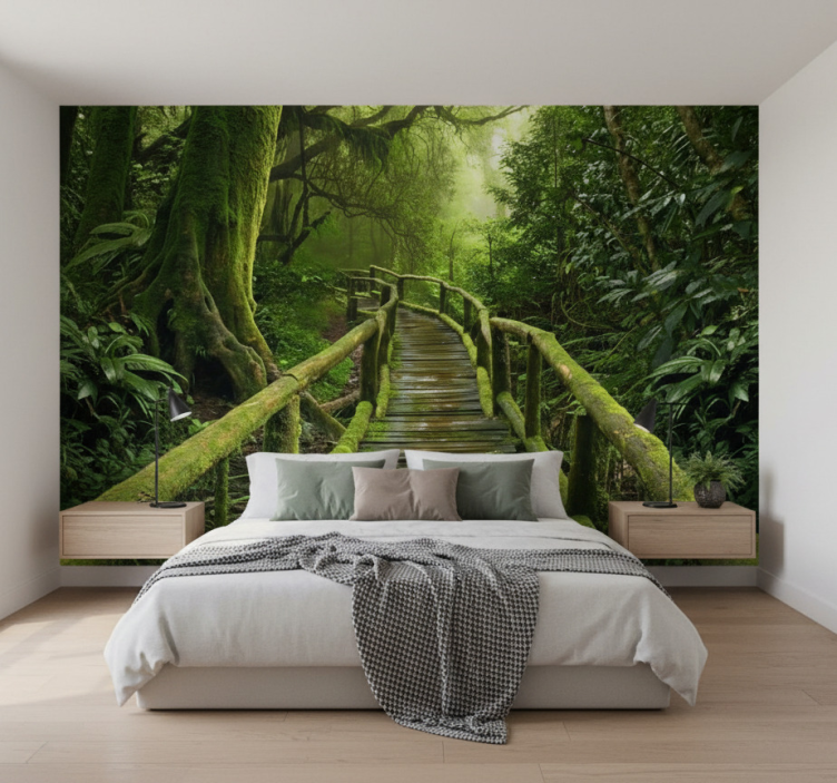 The Forest wall mural lush mossy boardwalk forest wall mural is an exceptional choice for decoration, as it brings the calming beauty of nature indoors. Imagine walking into a room that exudes the freshness of a forest, making every moment spent there feel like a peaceful retreat. This mural is perfect for creating a harmonious atmosphere in any space, inspiring relaxation and creativity.